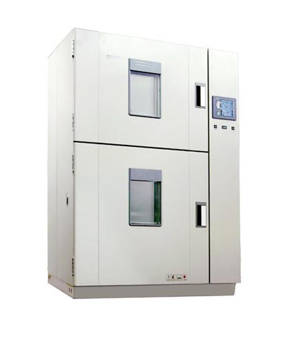 MC028系列溫度沖擊試驗(yàn)箱  一、產(chǎn)品簡介 用途:適用于對電工、電子和其他軍用設(shè)備在周圍大氣溫度急劇變化條件下的適應(yīng)性試驗(yàn)。 特點(diǎn): 1.充分吸收國外同類產(chǎn)品的優(yōu)點(diǎn),采用兩箱式上下結(jié)構(gòu),上箱體為高溫箱,下箱體為低溫箱。也可根據(jù)用戶要求設(shè)計(jì),制造左、右結(jié)構(gòu)的兩箱式溫度沖擊試驗(yàn)箱。也可以根據(jù)用戶要求采用單相式(或三箱式)結(jié)構(gòu)設(shè)計(jì)。 2.觸摸屏+PLC可編程邏輯控制器,RS485接口。 3.有工作室超溫、壓縮機(jī)過載、超壓、油壓超壓、風(fēng)機(jī)過載、缺相、壓縮機(jī)延時(shí)等保護(hù)功能,還有若干用戶選配的安全保護(hù)功能,如風(fēng)速過低,大門未關(guān)閉等等。 4.可選配遠(yuǎn)程監(jiān)控計(jì)算機(jī)及軟件,上位機(jī)實(shí)行冗余設(shè)計(jì),可連接PC電腦,也可連接觸摸屏控制器。上位機(jī)關(guān)機(jī)不影響系統(tǒng)控制。 二、技術(shù)參數(shù):